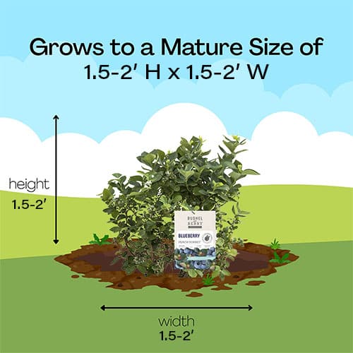 Peach Sorbet® is a show stopper all year long! This compact blueberry is stunning with leaves that are peach, pink, orange, and emerald green. White bell-shaped flowers will appear in spring, leading to an abundant summer crop of sweet, tropical flavored blueberries. In most climates, this plant will keep its leaves throughout winter and turn a rich eggplant purple.