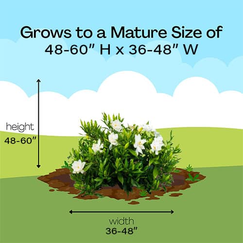 One of the more cold hardy varieties, this attractive bush has glossy, leathery dark green foliage and an abundance of magnificently fragrant large white blooms. Has a more upright habit and more tolerant of direct sun light than other gardenias, with flower buds that resist late spring frosts without damage. Frostproof makes a wonderful hedge or foundation planting. Place close to outdoor living areas or entryways to enjoy the fragrance. Plant in mass to screen walls and fences or include with other fragrant bloomers in a container planting!