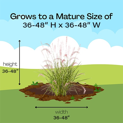 Graceful, upright, smoky rose-purple flower spikes that nearly glow when back lit by the sun, with a longer bloom season and greater cold tolerance than other varieties. Forms a tufted mound of deep green, arching foliage. A great landscape or container accent. Stunning in mass plantings. Top reasons to plant Karley Rose- Erosion control; Deer resistant; Summer foliage; Fall foliage; Tolerates heat