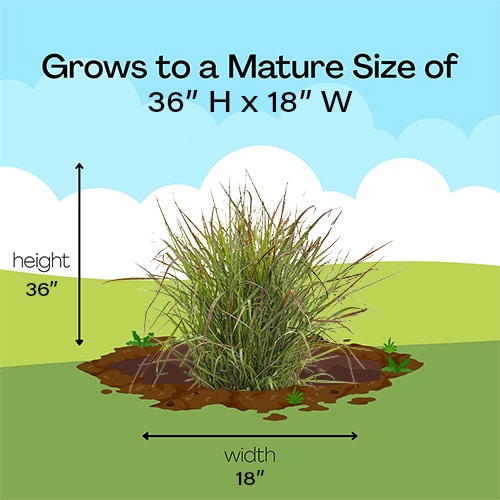 Cheyenne Sky Grass forms a dense, upright clump of blue-green leaves that turn wine red in early summer. Purple flower panicles appear just above the foliage in late summer. This petite red grass is ideal for containers, landscapes, and as accents!
