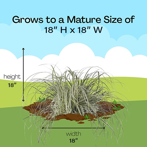 A moderate growth rate and a mature size of 12-18″ H x 12-18″ W means that trimming is completely unnecessary. Therefore, low-maintenance gardeners can rest assured that this grass won’t go wild while they aren’t looking.