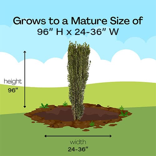 The Holly Sky Pencil is a narrow, columnar shrub that produces small, greenish evergreen leaves. New growth emerges light green but darkens up with age. This Holly can get up to 8 feet in height but stays very narrow at 2-3 feet wide at maturity. Let them grow to the height you would like, and then just keep the top trimmed. They are grown primarily for their interesting shape and make perfect container gardens.