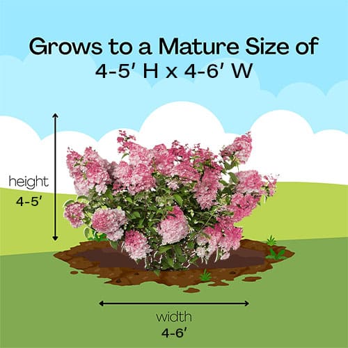 Spring Sizzle Panicle Hydrangea is one of the earliest blooming panicle hydrangeas that brings unforgettable blooms and color to the garden. Starting in early summer, Spring Sizzle is covered in white flowers that quickly transform to deep red, even in warm regions. Plus, the blooms are held up on strong stems that won’t flop. Maturing at four to six feet tall and four to five feet wide, this hydrangea is perfect for hedges and foundation plantings.