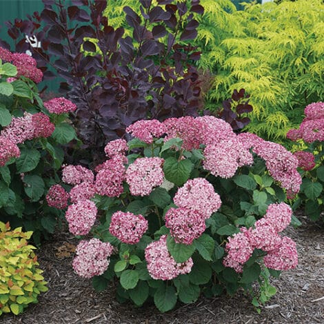 Cold climate gardeners, rejoice: there’s finally a purple hydrangea for you! Introducing Invincibelle Mini Mauvette hydrangea – it’s unlike anything that’s ever come before. Why? Well, it blooms every single year, even in cold climates and is impervious to bad pruning. It’s the same type of hydrangea as the classic and much-loved ‘Annabelle’ but instead of plain white blooms, the flowers are a deep pink-mauve, and they’re held up on strong, sturdy stems that don’t flop. The show begins in early summer and because Invincibelle Mini Mauvette is a rebloomer, it continues clear through frost for an endless supply of flowers for the landscape or vase (both fresh and dried!). Top reasons to grow Invincibelle Mini Mauvette hydrangea: 1. Blooms ever year, even in chilly USDA zone four. 2. Strong stems hold the beautiful, unique pink-mauve blooms upright all season. 3. Dwarf habit makes it perfect for any sized landscape.