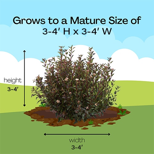 Little Devil Ninebark impresses with its upright spreading habit and fine-textured, dark foliage that sets it apart from another ninebark. Mildew resistant and low maintenance, Little Devil also requires little to no pruning. Additionally, it is free from pest and disease issues and adapts well to wet or dry soil. Clusters of small purplish-white flowers bloom in June that contrast nicely with the burgundy foliage. Little Devil is a good substitute for barberry in areas of the country where barberry is invasive.