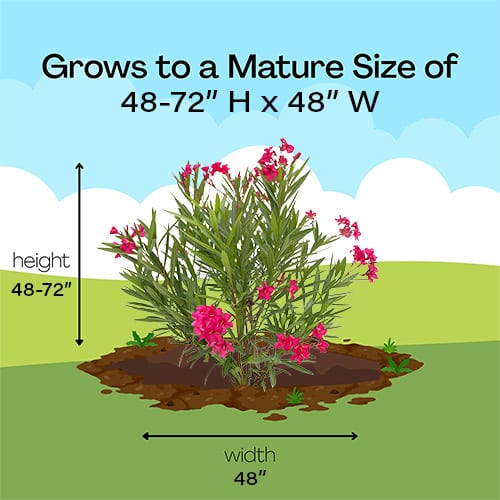 Enjoy bright pink flowers every day of the year with Austin Pretty Limits oleander. This non-stop bloomer was selected in Austin, Texas, for its dense, rounded habit and exceptional disease resistance. The bright pink flowers make it the ideal choice for hedges, specimens, containers, and more. While this plant can only be grown outdoors in warm climates, cool climate growers can enjoy its constant blooms in a patio container during the summer. Top reasons to grow Austin Pretty Limits oleander:- Blooms non-stop, even in very hot areas- Improved habit gives it a full, lush look that ensures coverage- Disease resistant foliage stays clean and green all season, long blooming, and heat tolerant.
