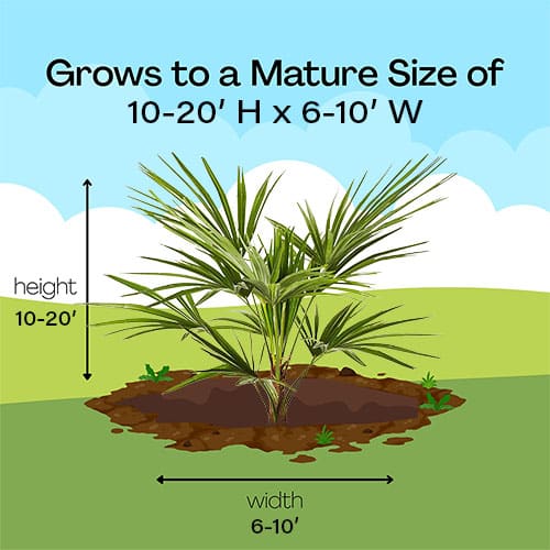 The Windmill Palm bucks the old idea that palm trees are for warm, tropical regions only because these palms are hardy all the way to 10 degrees Fahrenheit! These low-maintenance palm trees form beautiful bunches of green “windmill” style fronds that for to stand upon the spiny trunks of the tree. Not only that but Windmill Palm Trees are deer resistant and drought tolerant. They do well in soil with good drainage. Windmill Palm Trees grow up to 20 feet tall, bringing the feeling of the tropics to any landscape! Perfect for containers and landscapes!