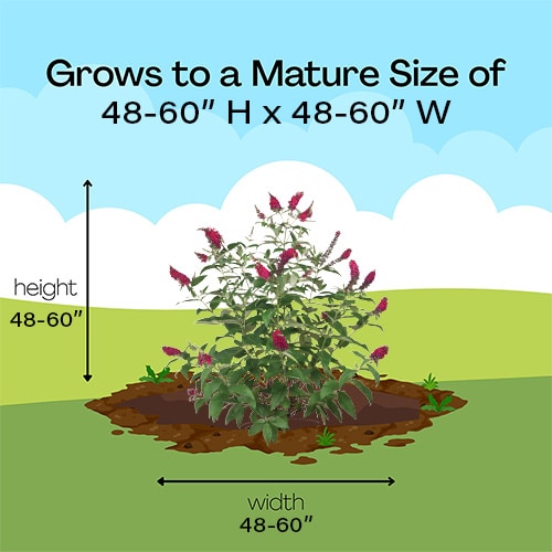 Proven Winner Buddleia Miss Molly is a compact shrub that will make a container or garden pop with color. The fragrant flowers are the closest to red of any butterfly bush and appear for months every summer without deadheading. This non-invasive variety thrives in hot climates and attracts butterflies, and hummingbirds.