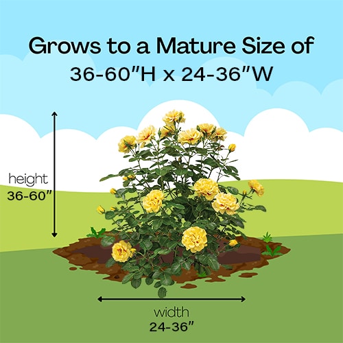 The Rise Up series of roses are the first-ever climbing roses from Proven Winners Color Choice Shrubs. We call them “mini climbers,” as they keep a neat, dense habit and can be grown as a climber or a shrub rose, depending on how the gardener prunes or trains them. These vigorous, healthy, re-blooming roses create a range of new applications for Proven Winners roses. The Rise Up Ringo rose is a beautiful mini-climber with double golden yellow flowers featuring a bright red eye. Very healthy foliage and a very vigorous growth habit. The ways Rise Up Ringo can be used are endless.