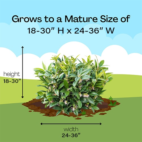 Why grow Sweet & Lo sweet box? Very shade tolerant; Early spring blooms for pollinators; Year-round appeal with evergreen foliage; Fragrant Flower; Winter Interest