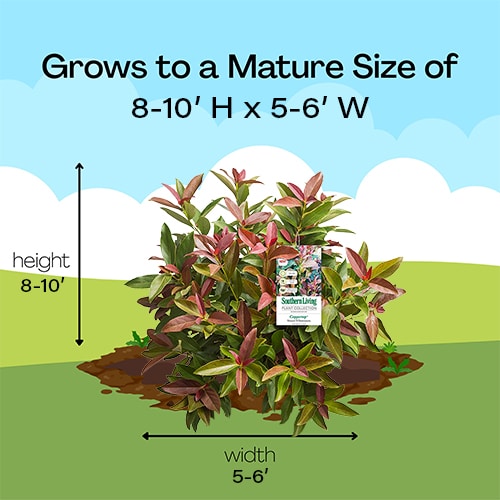 The Coppertop Sweet Viburnum is a brilliant, bold, and beautiful new ornamental shrub from the Southern Living Plant Collection! It features glossy dark maroon-red new growth that fades to copper and then olive green over the season. Therefore, it sports a multi-toned appearance throughout much of the season. Furthermore, it also produces small white flower clusters with a light fragrance in spring. It grows naturally upright with a bushy form and reaches 8-10 feet H x 5-6 feet W at maturity. Its foliage is surprisingly compact and dense, without any pruning. Therefore, this is a notably low-maintenance addition to your landscape. It’s perfect for a trimmed hedge, privacy screen, mass planting, or even as a specimen.